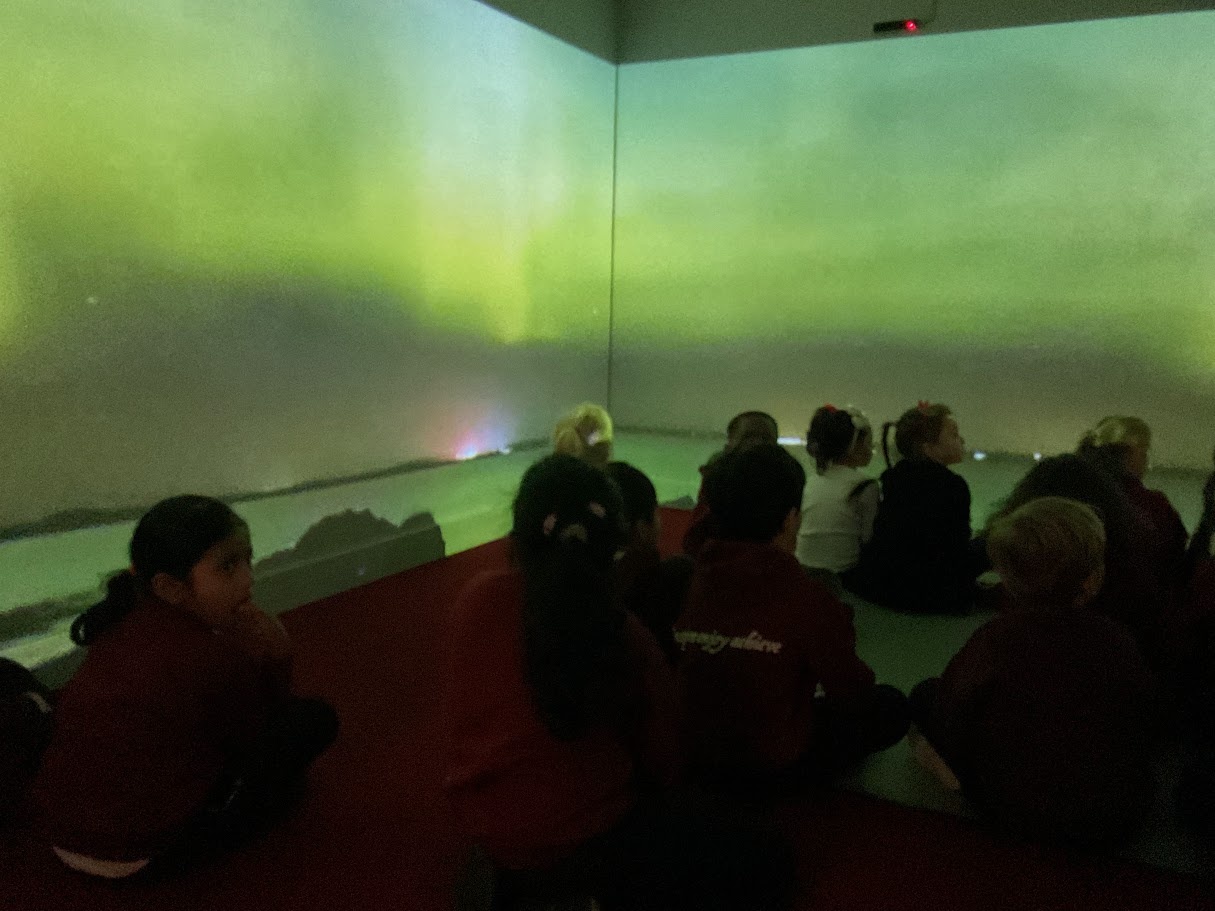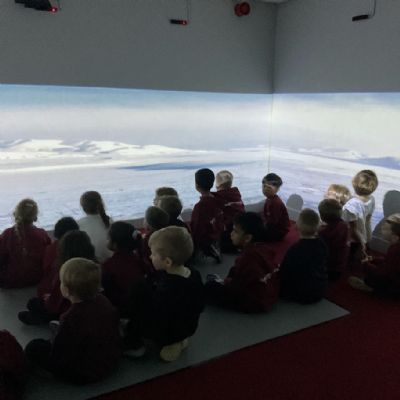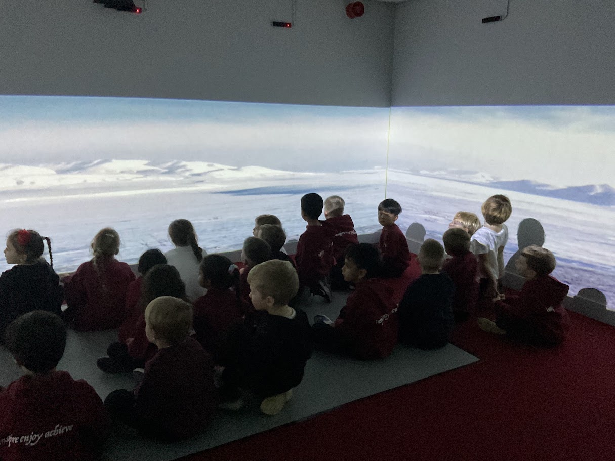 Later in the week, we took a trip to a very different place – the Arctic! Through the sights and sounds of the immersive room, we explored this icy part of the world. The children discovered where the Arctic is on a map, what the weather is like and what kinds of animals live on the land, in the water and in the sky. We also learnt about the people who make their homes there and how they adapt to such a cold environment.
