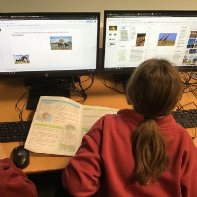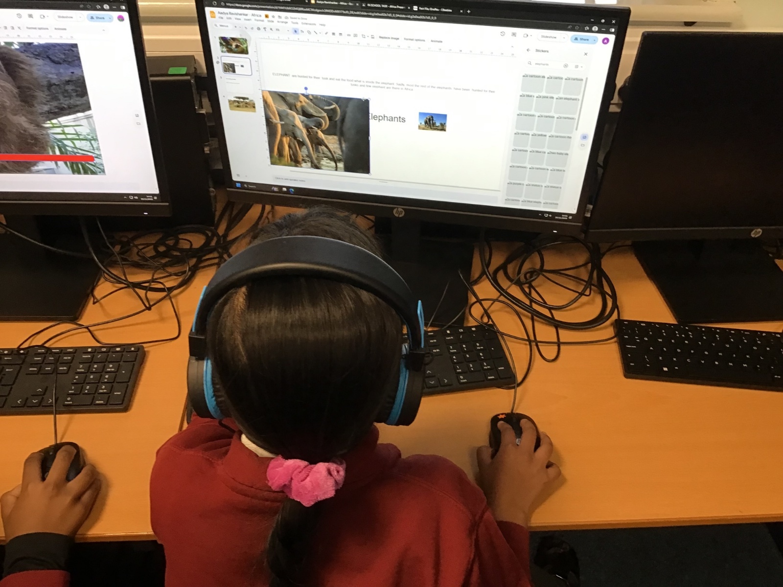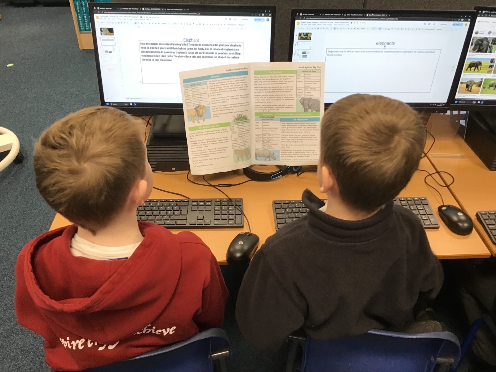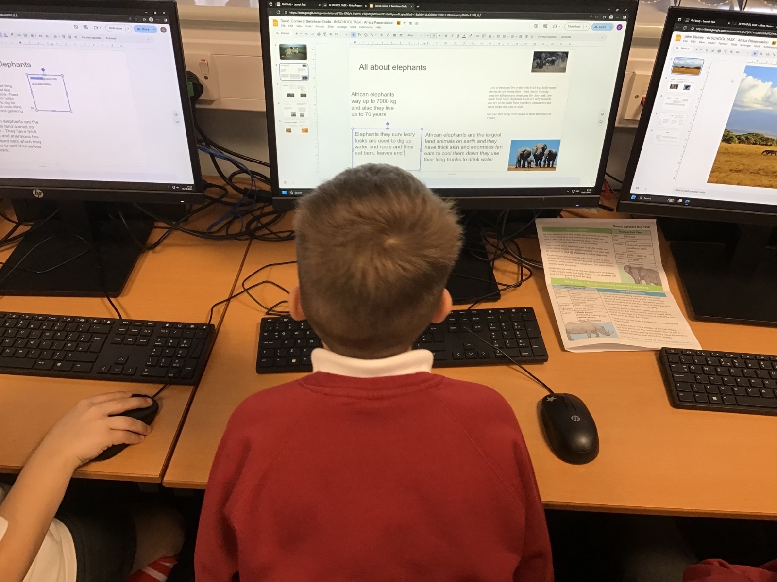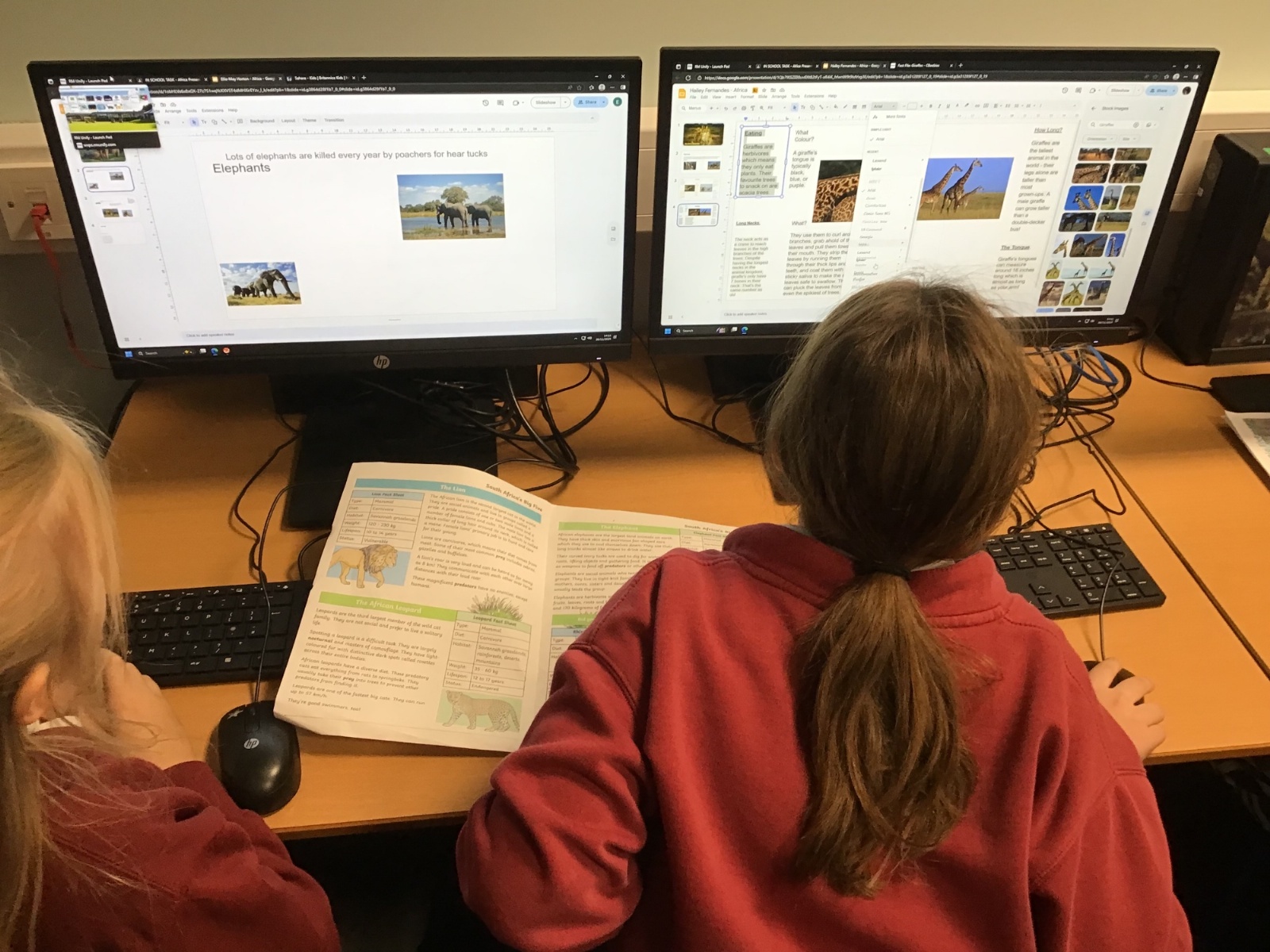 This week in Year 4, we are continuing our Digital Literacy unit. We are creating our own slideshow of information all about Africa. This follows on from our unit about 'The Hunter' which we have been reading in English and our new book which we will be starting in the next week or so which also has an African setting. In our Comprehension lesson this morning, we learned all about 'The Big Five' (five African animals) and used this information in Computing to add detail to the information we had started to collate. Our Computing skills are really improving, well done to us!