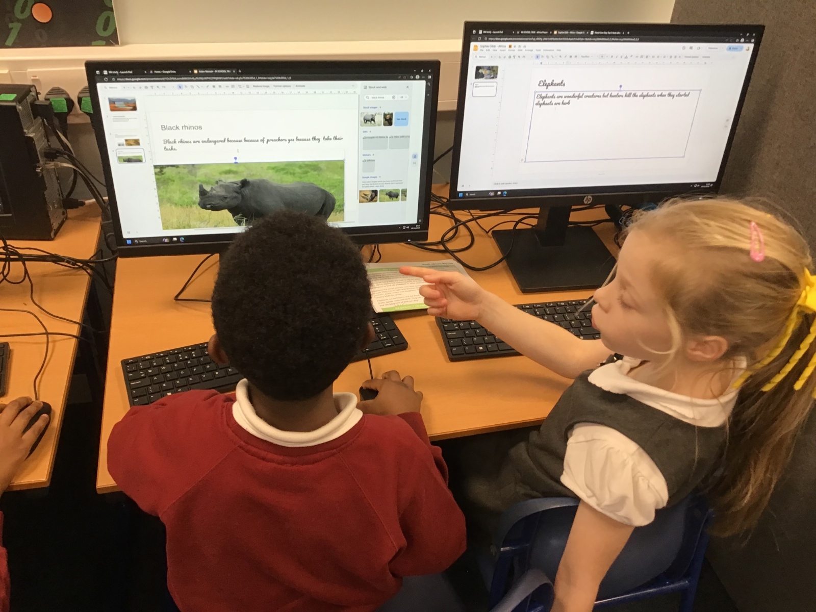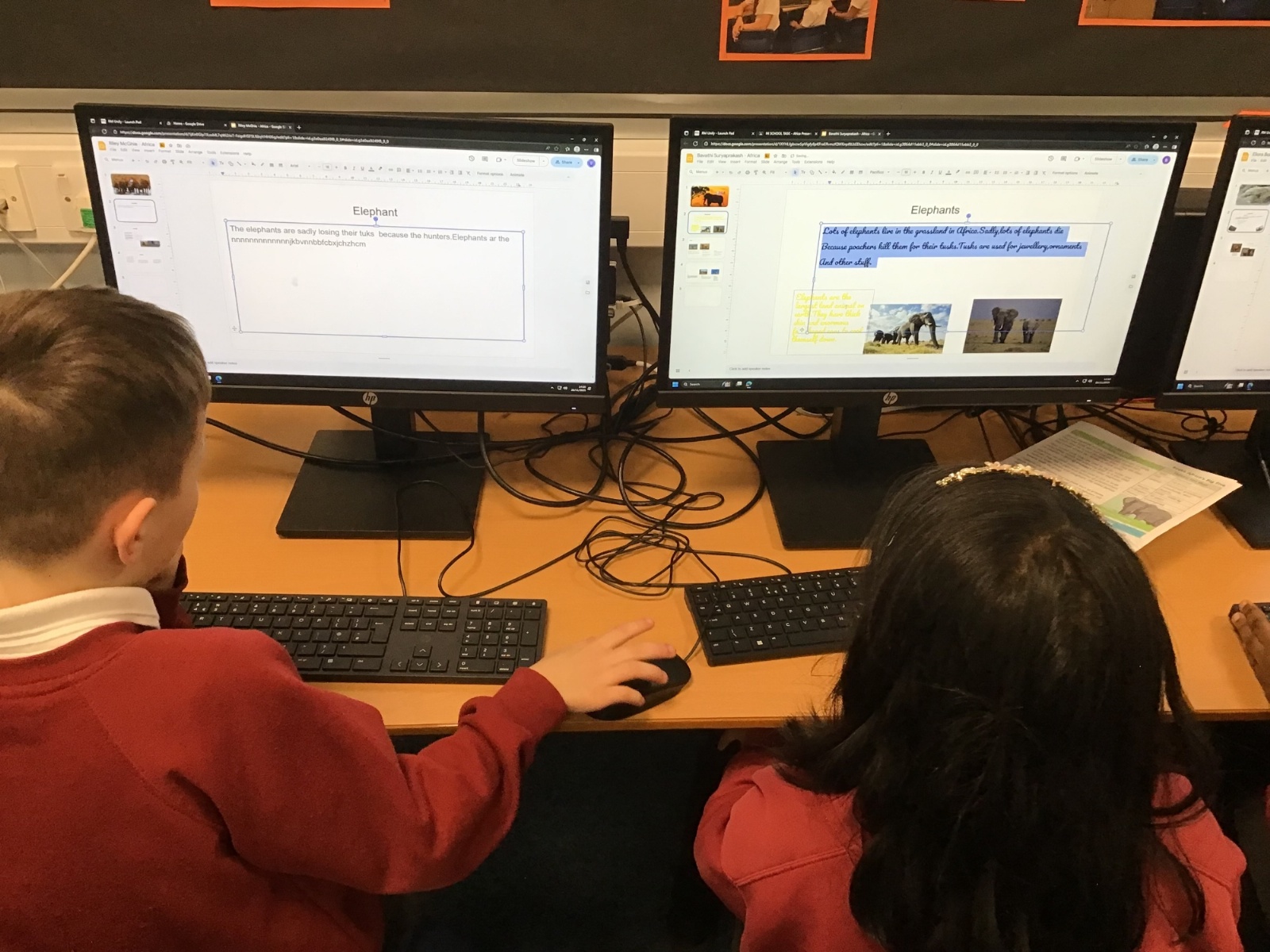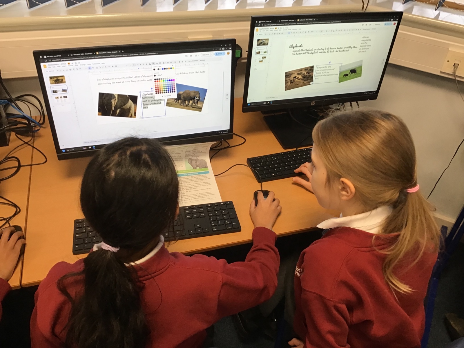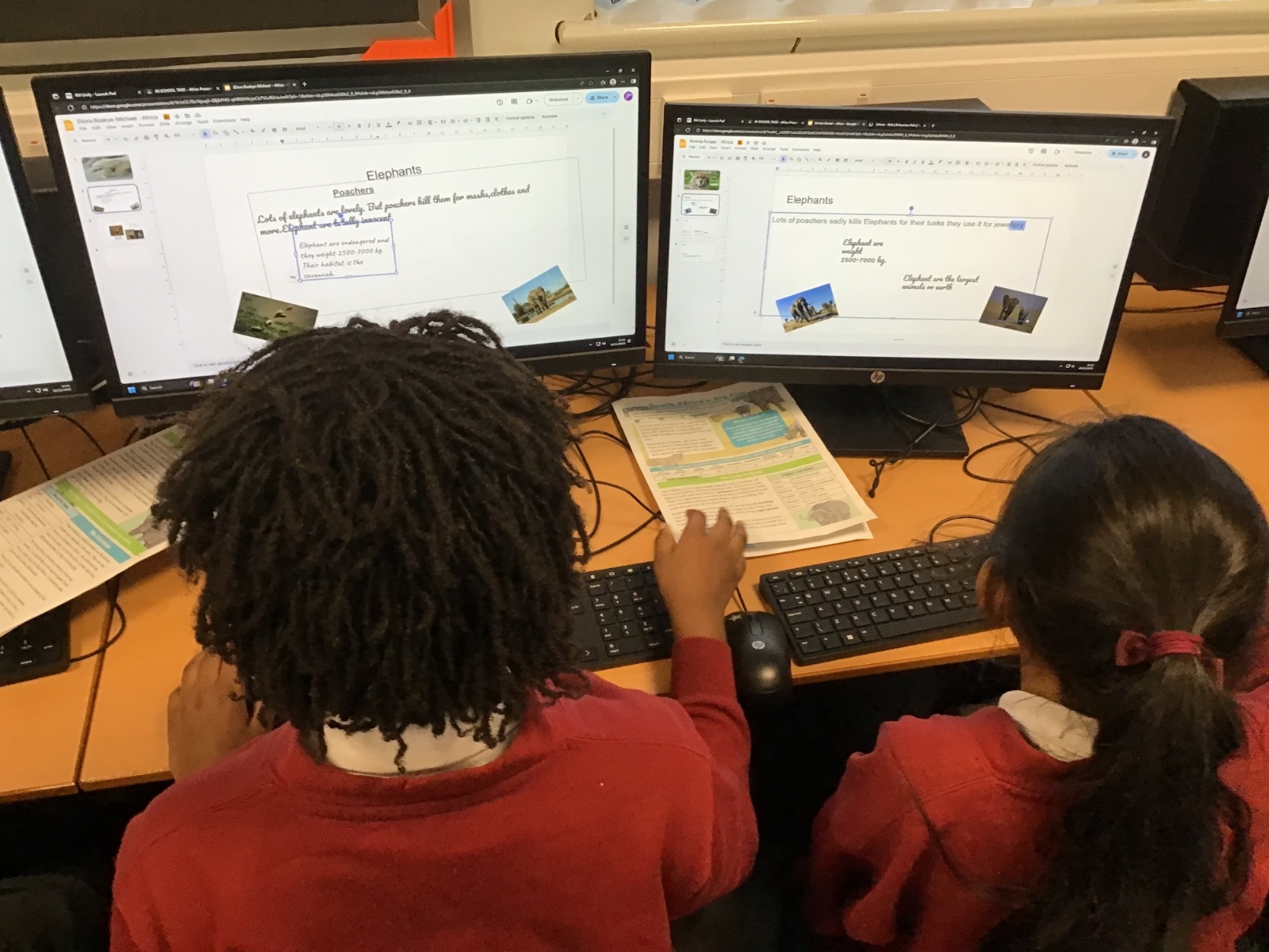 This week in Year 4, we are continuing our Digital Literacy unit. We are creating our own slideshow of information all about Africa. This follows on from our unit about 'The Hunter' which we have been reading in English and our new book which we will be starting in the next week or so which also has an African setting. In our Comprehension lesson this morning, we learned all about 'The Big Five' (five African animals) and used this information in Computing to add detail to the information we had started to collate. Our Computing skills are really improving, well done to us!