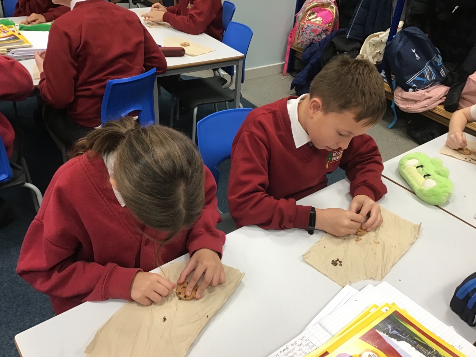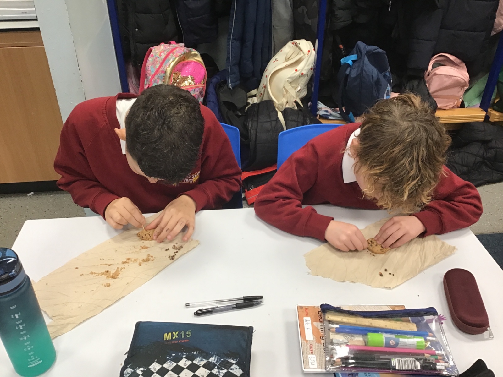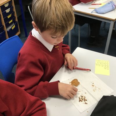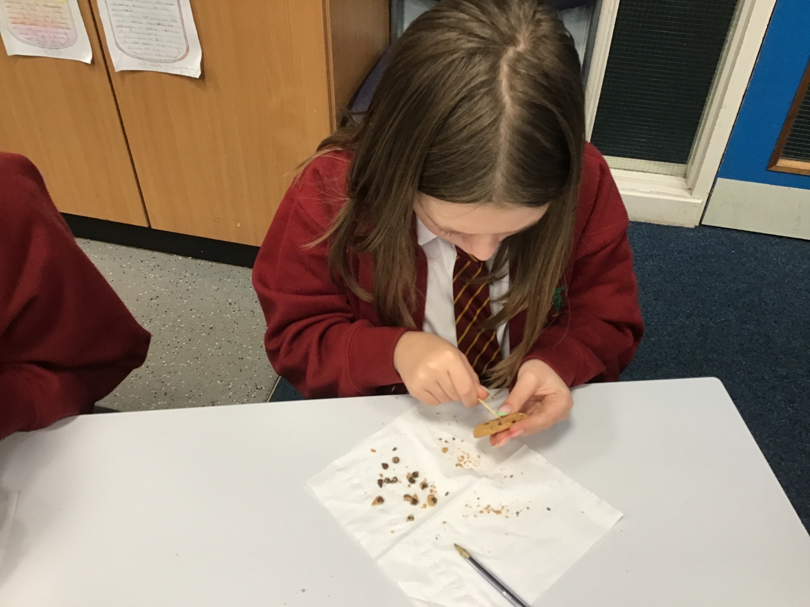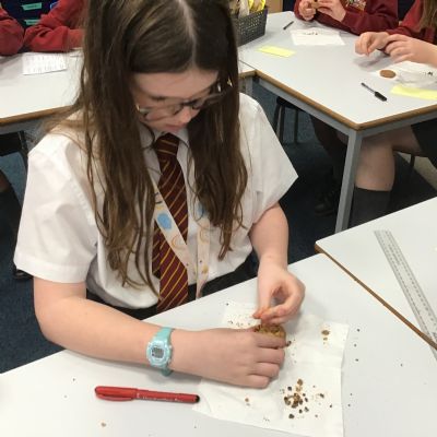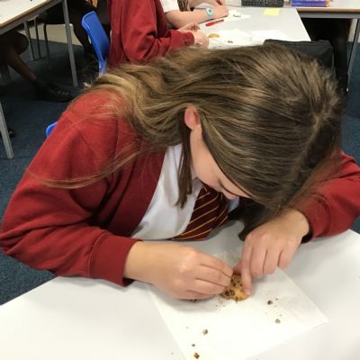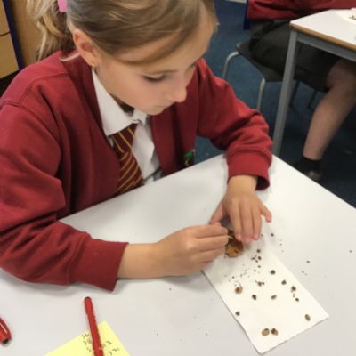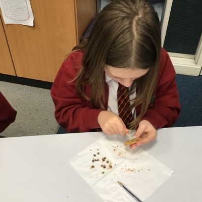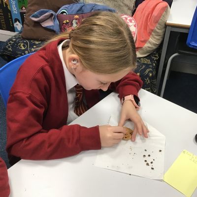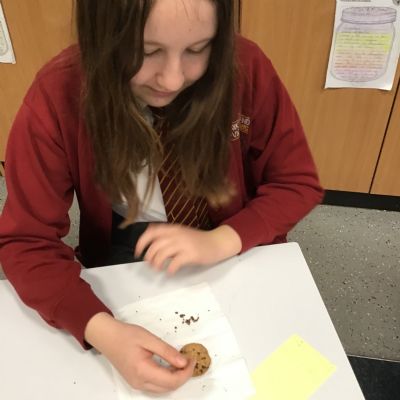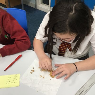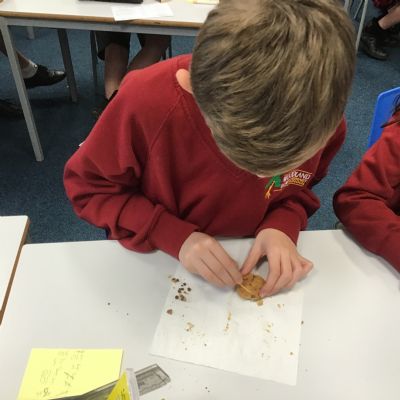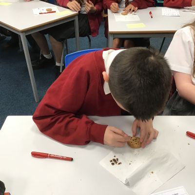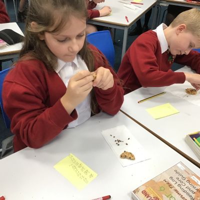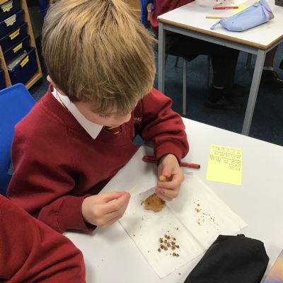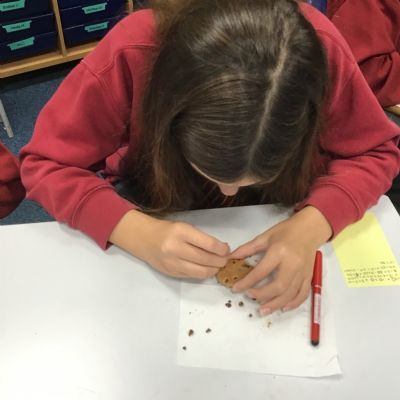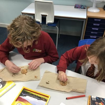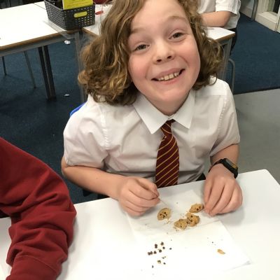 Today we learnt about Mary Anning and some of her most famous discoveries. We then practised excavating ‘chocolate chip fossils’, from cookies, using cocktail sticks. We found that palaeontologists have to work very delicately!