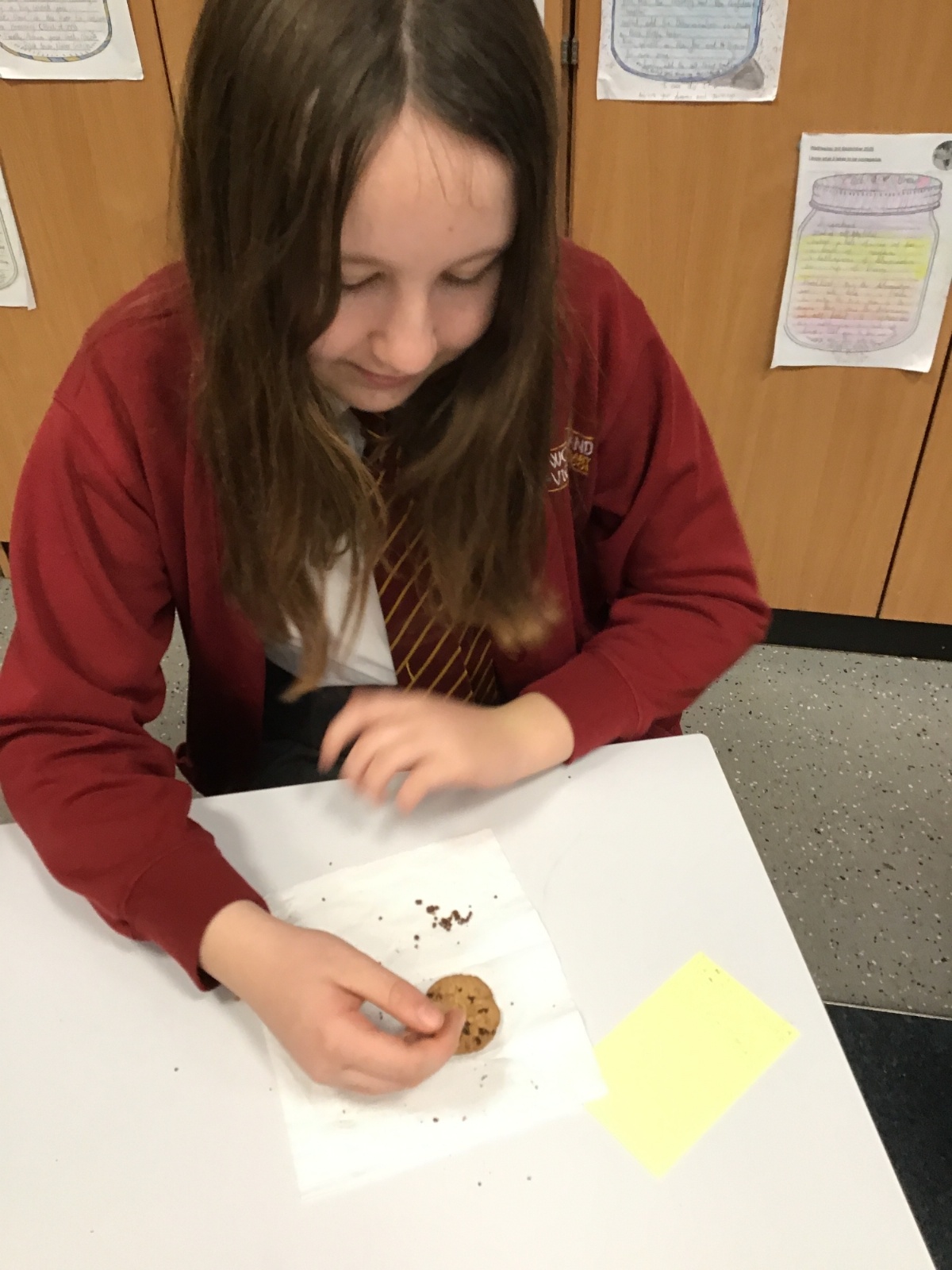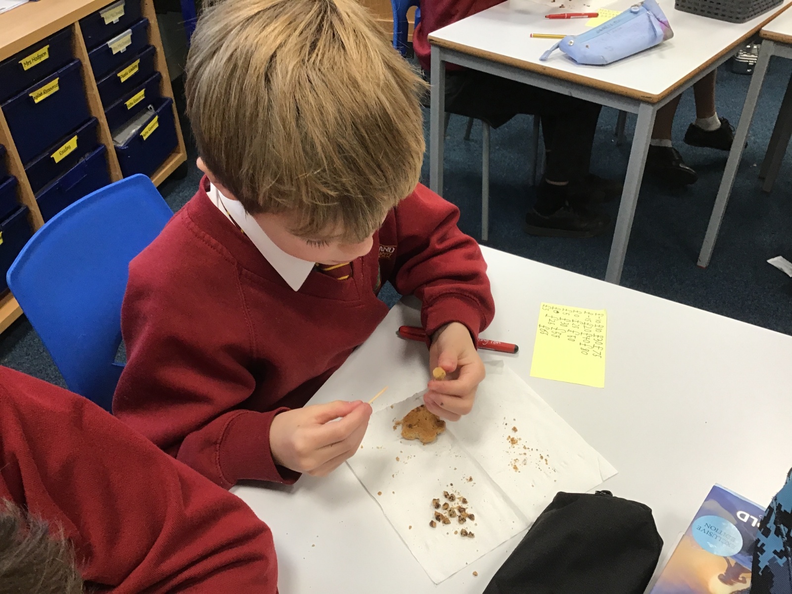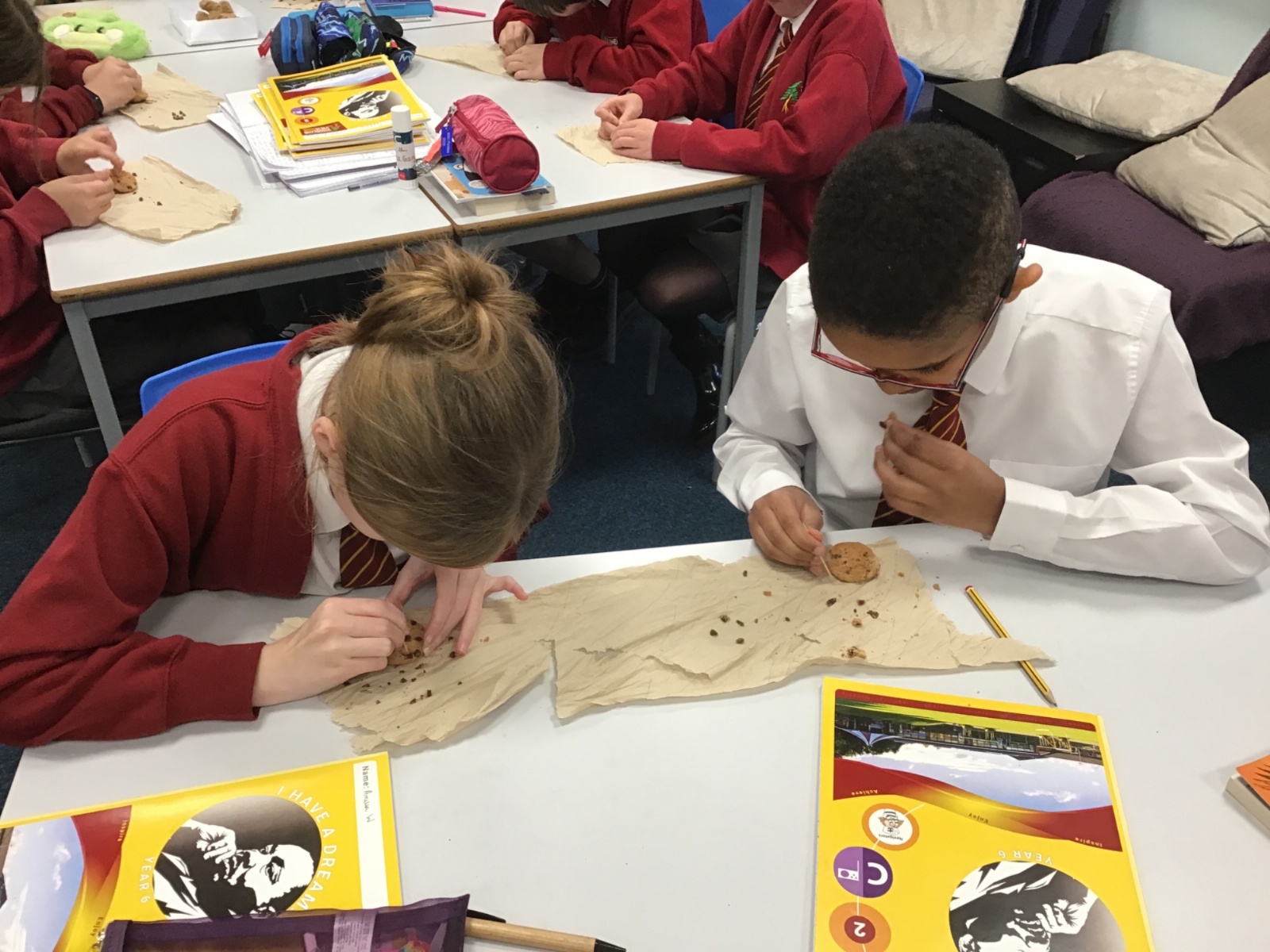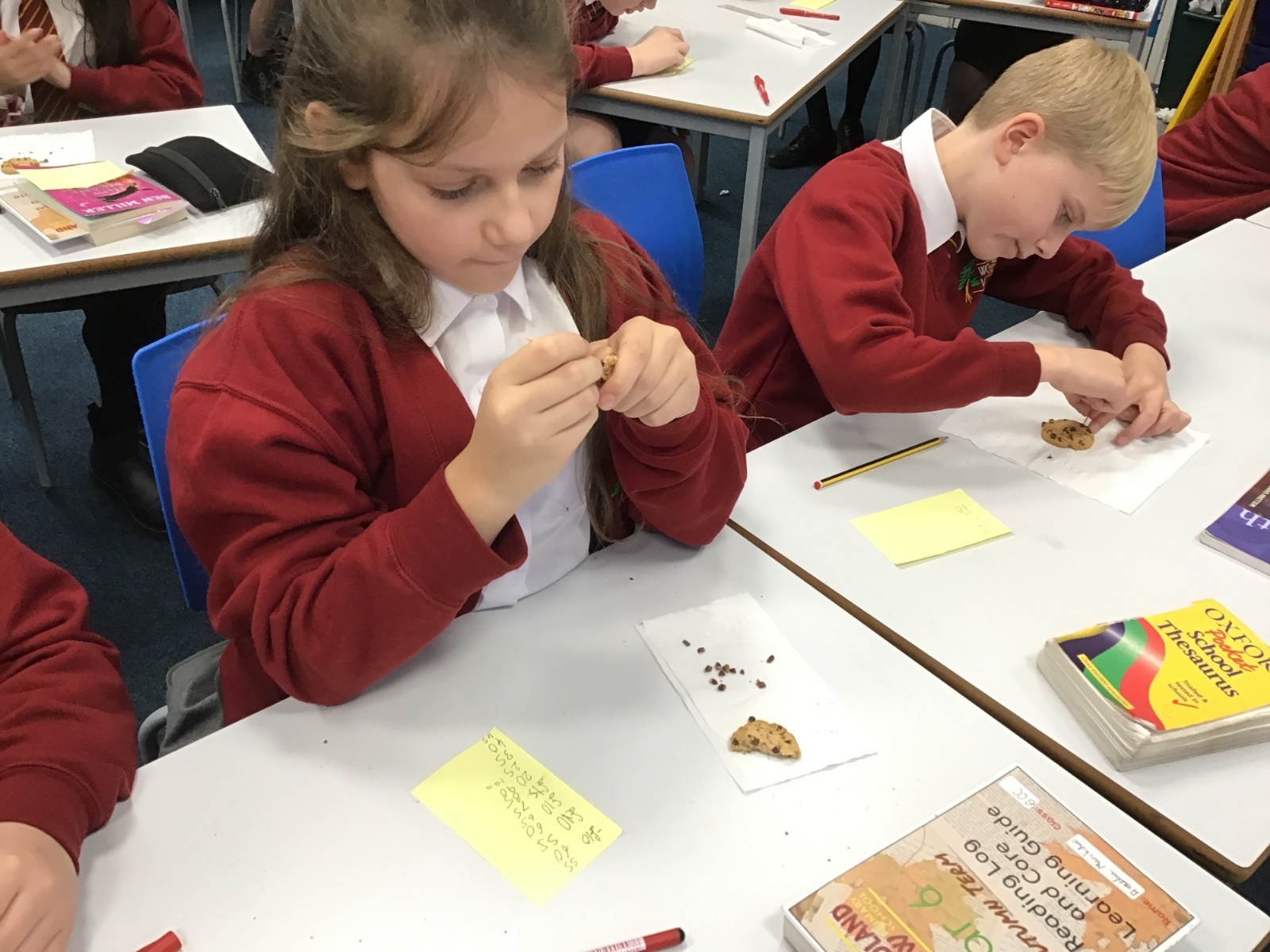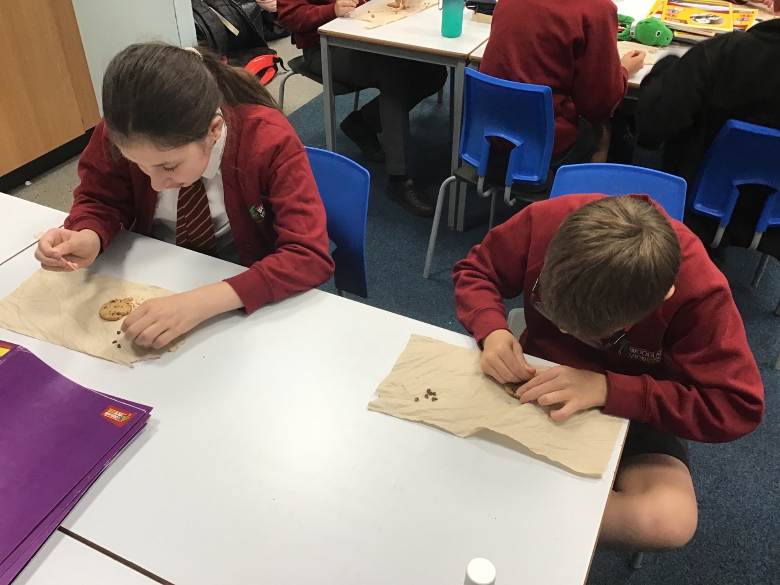 Today we learnt about Mary Anning and some of her most famous discoveries. We then practised excavating ‘chocolate chip fossils’, from cookies, using cocktail sticks. We found that palaeontologists have to work very delicately!