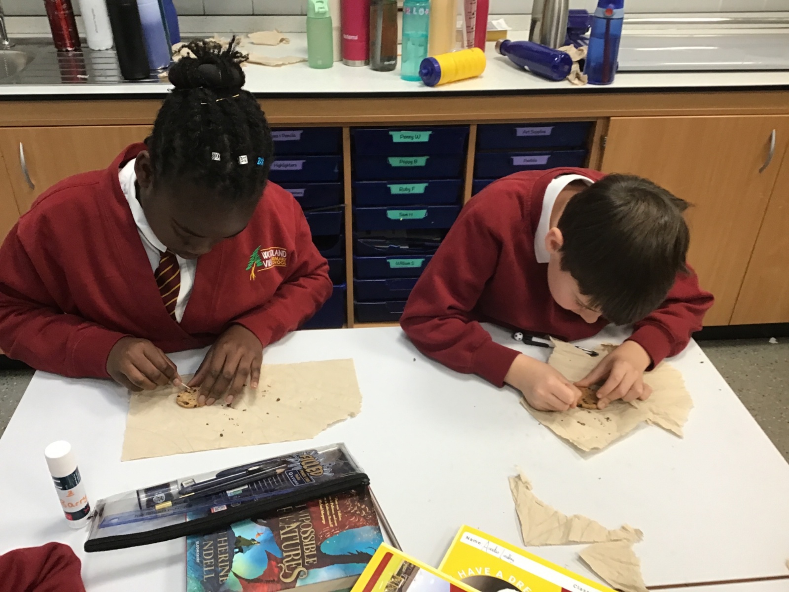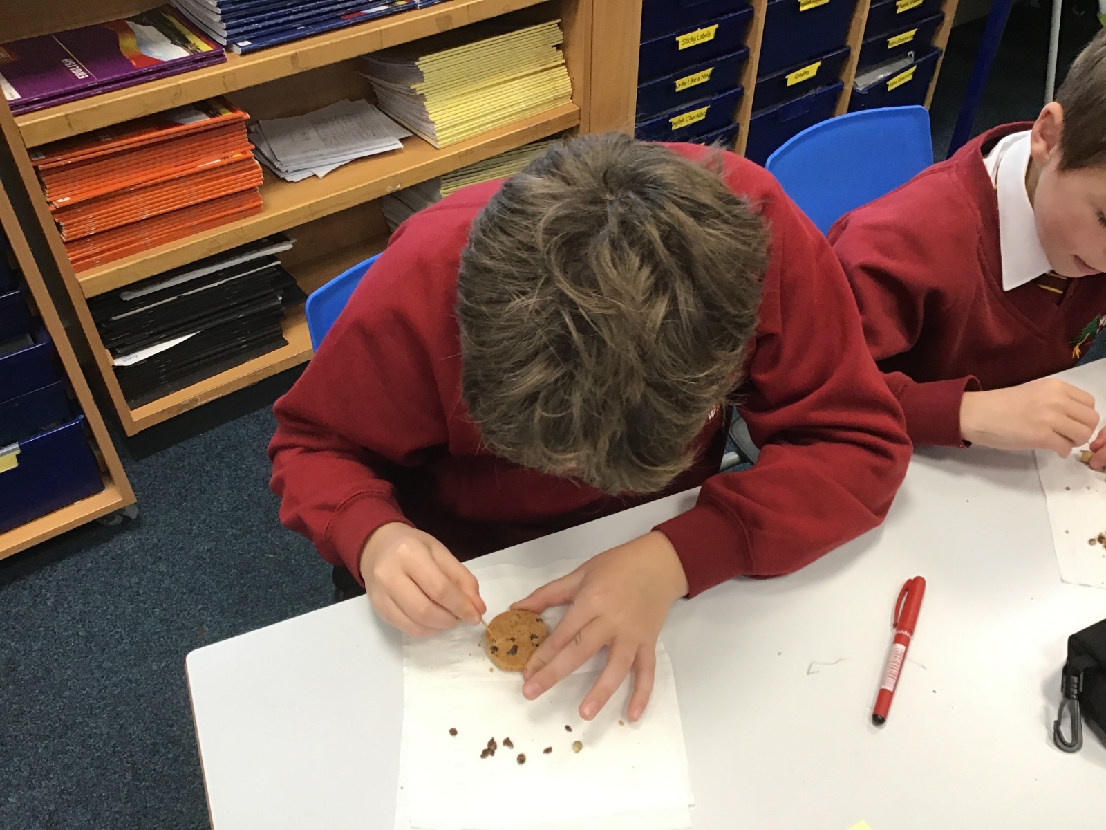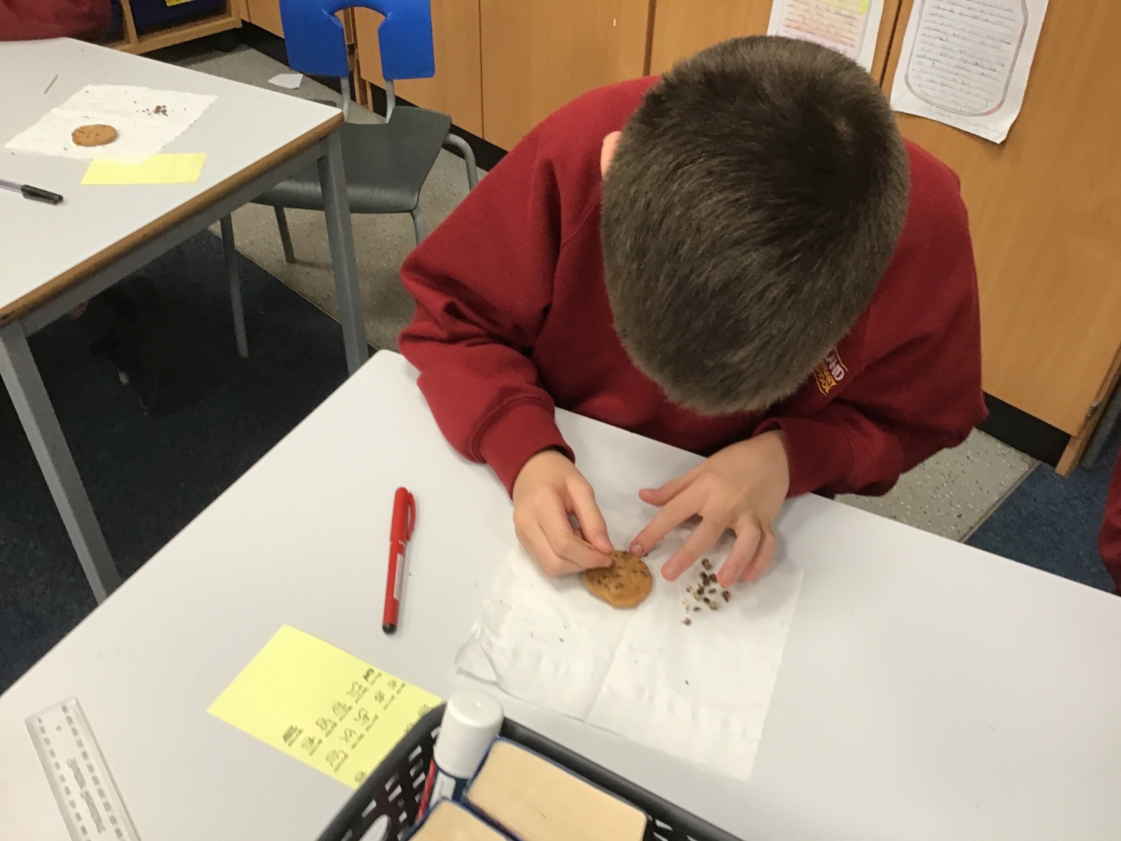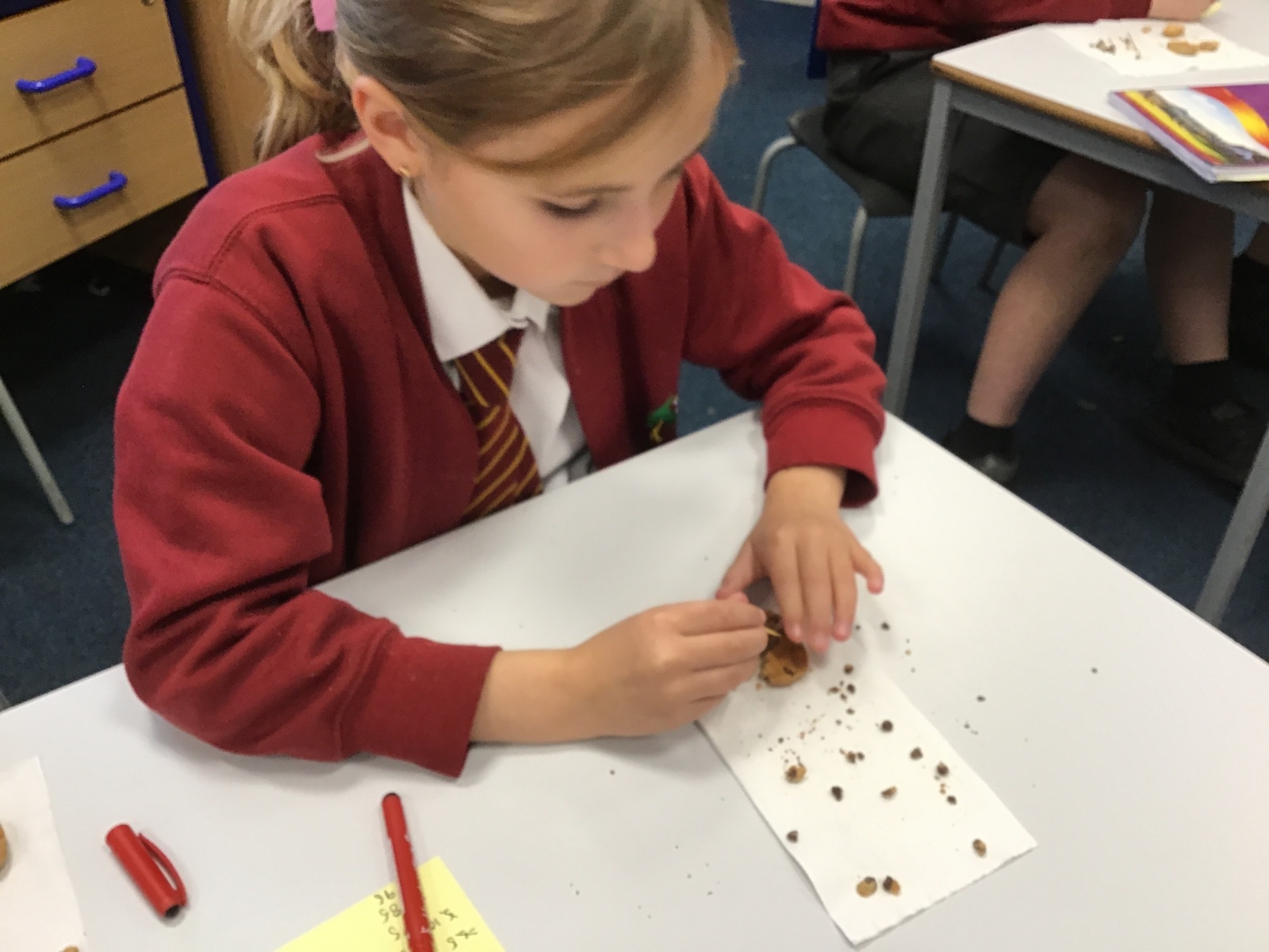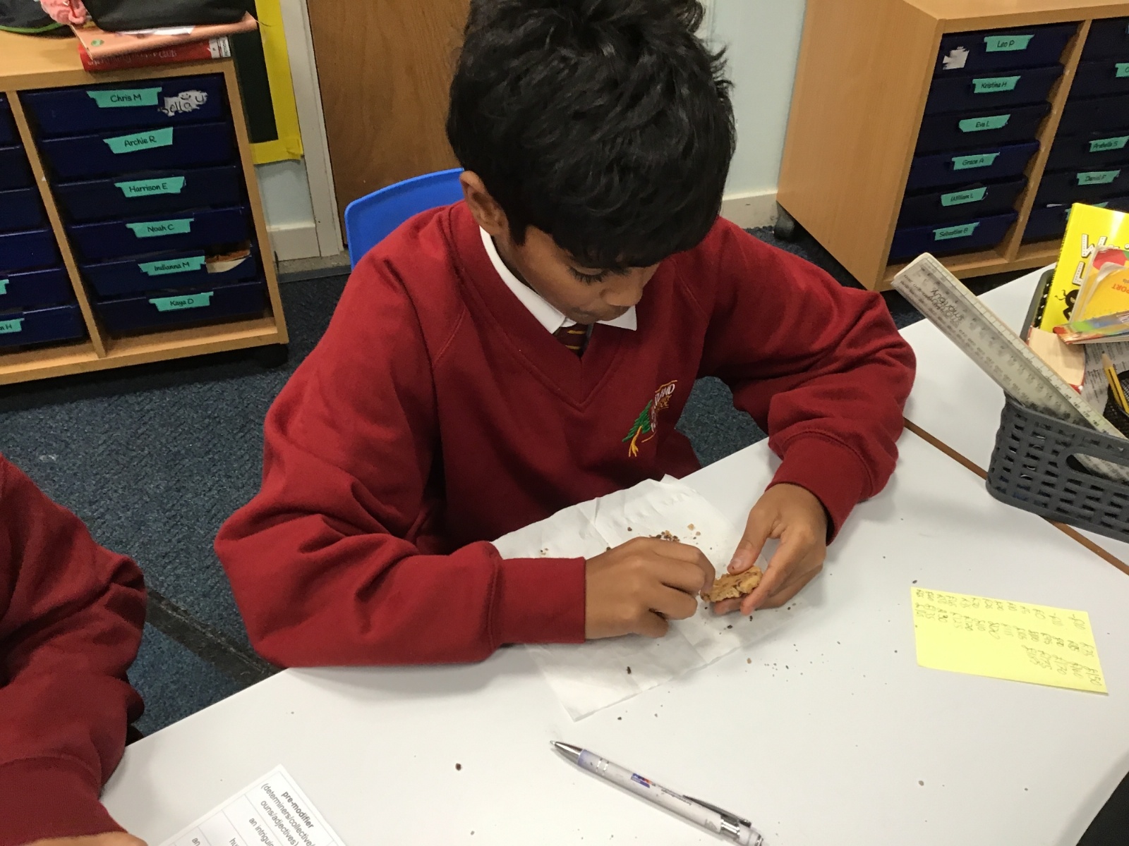 Today we learnt about Mary Anning and some of her most famous discoveries. We then practised excavating ‘chocolate chip fossils’, from cookies, using cocktail sticks. We found that palaeontologists have to work very delicately!