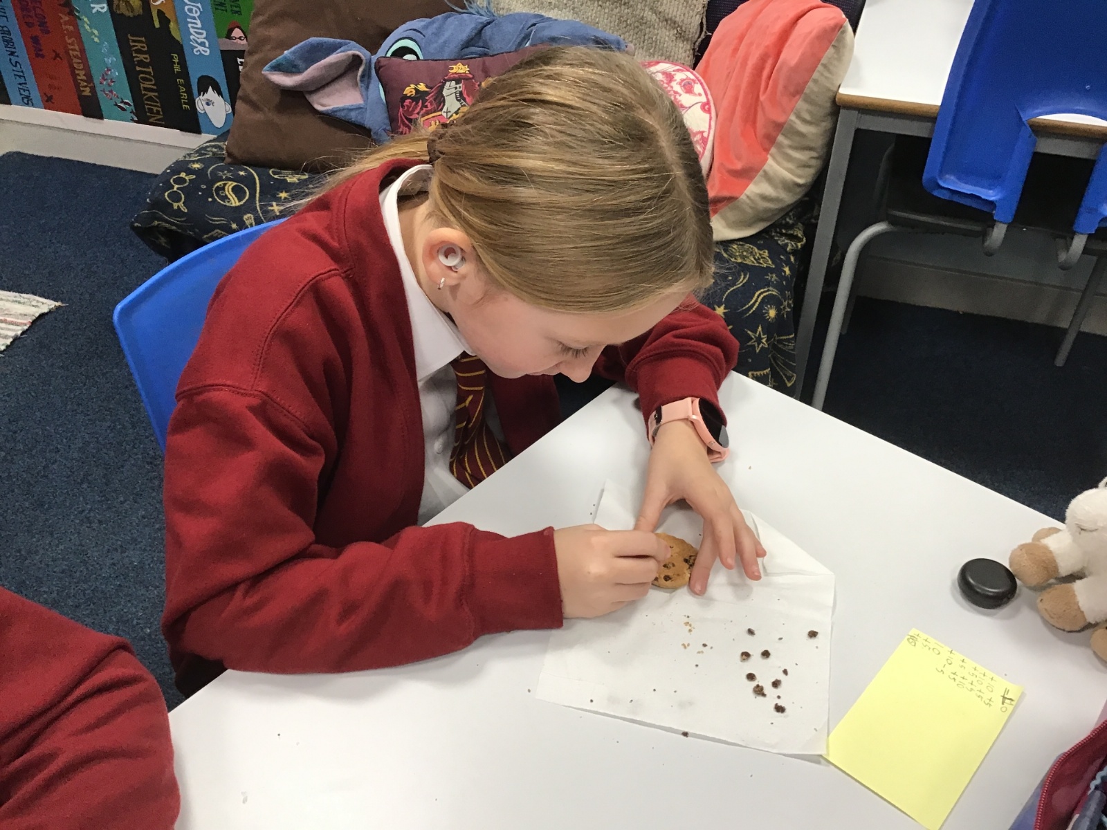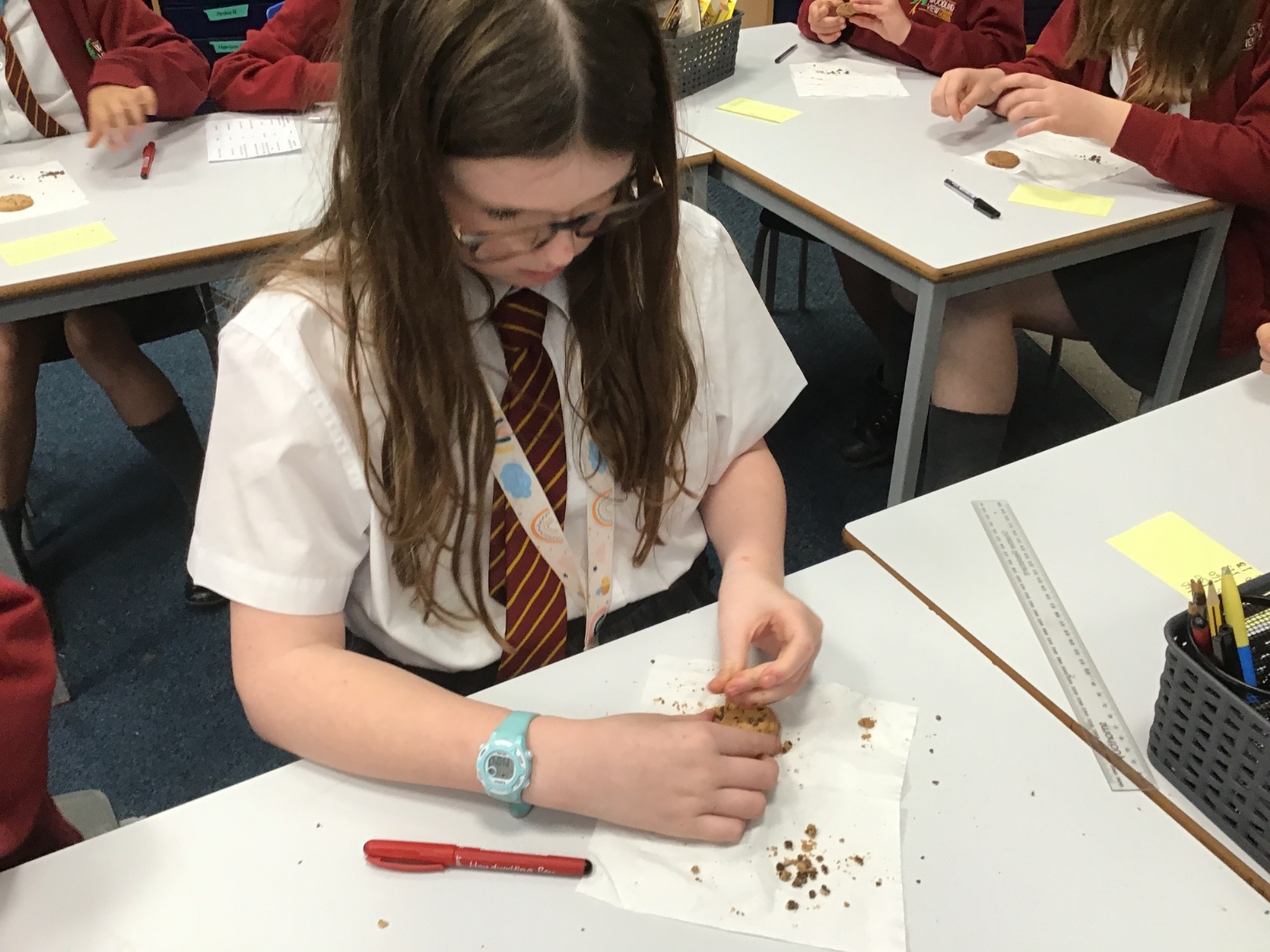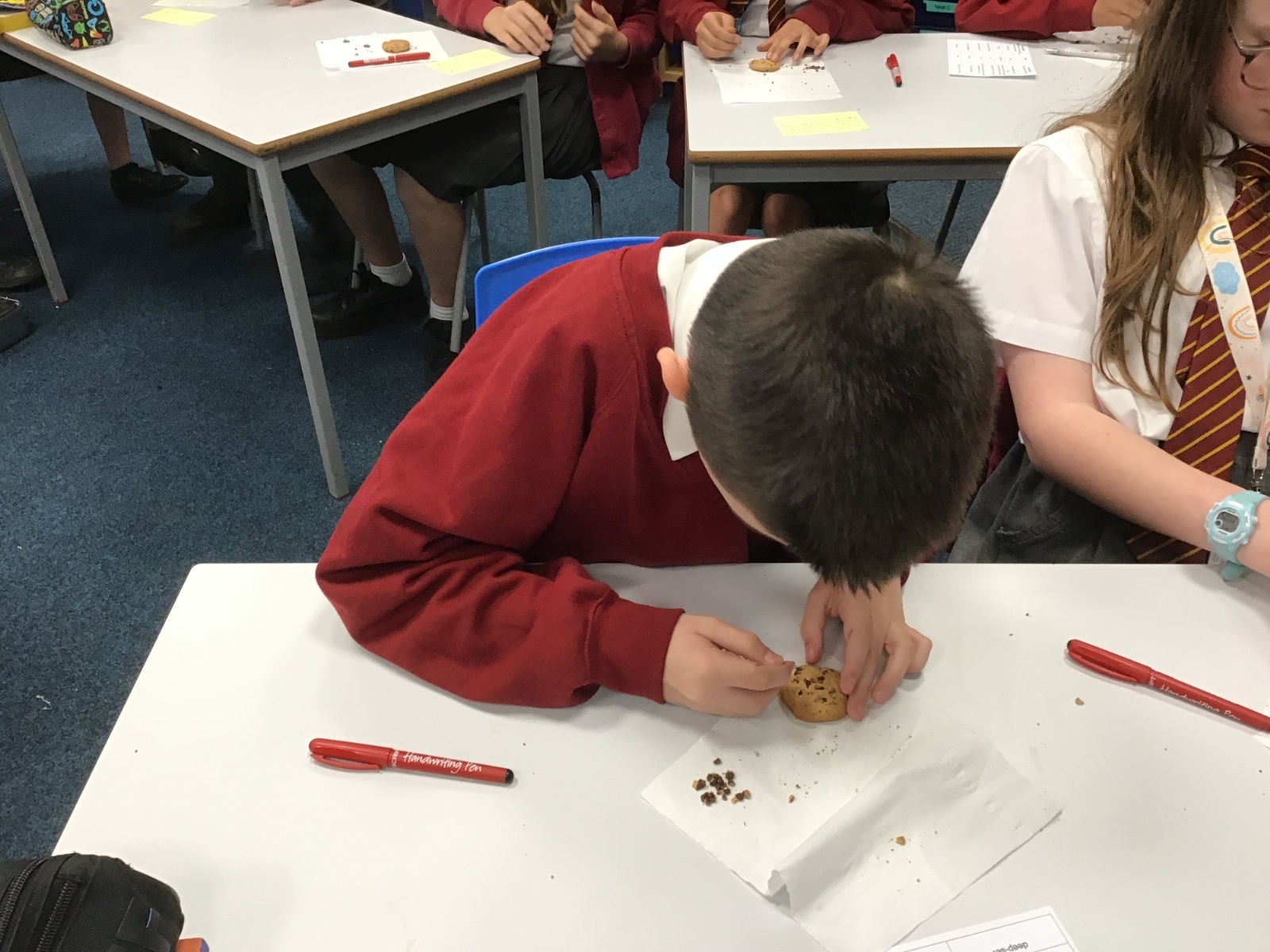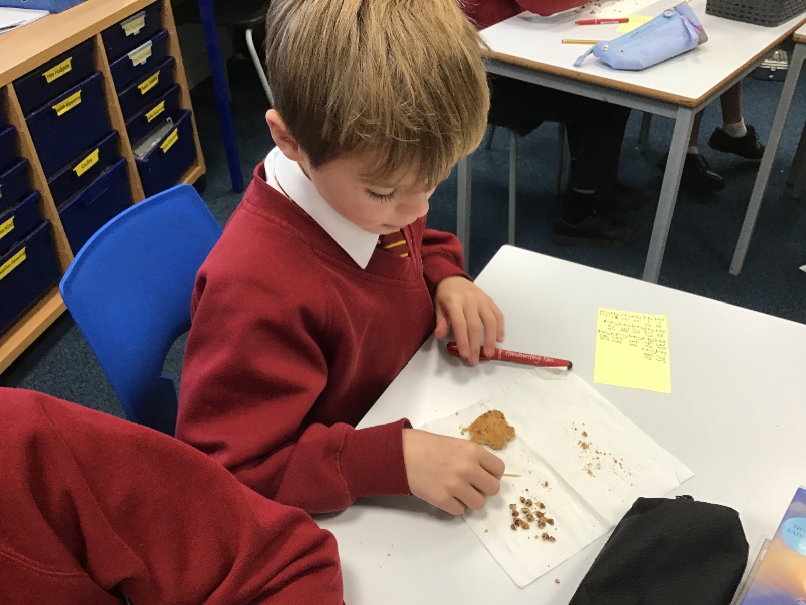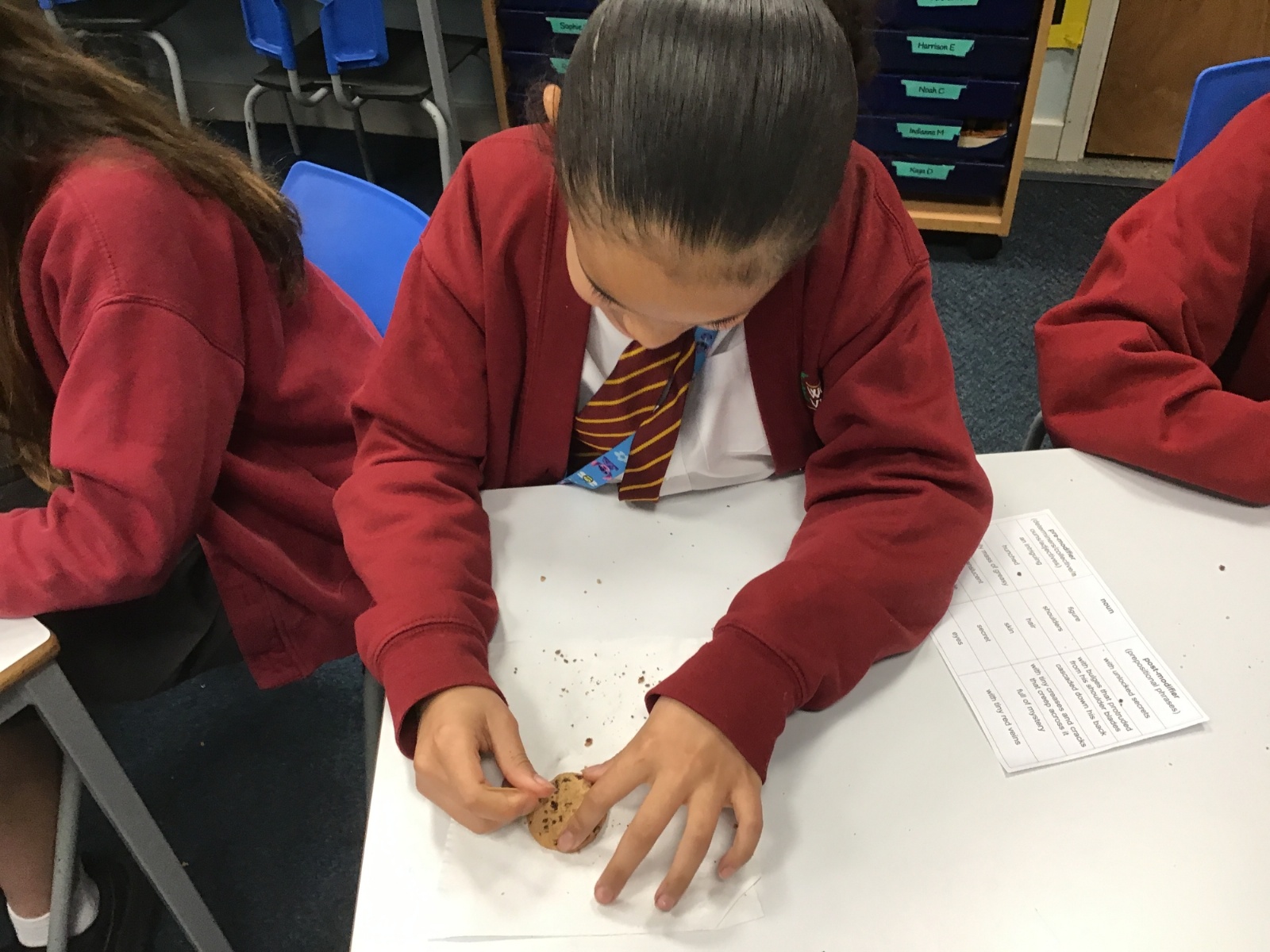 Today we learnt about Mary Anning and some of her most famous discoveries. We then practised excavating ‘chocolate chip fossils’, from cookies, using cocktail sticks. We found that palaeontologists have to work very delicately!