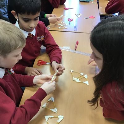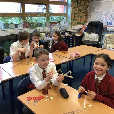 In DT this week we have been working in groups to make our own bridges! Using spaghetti and masking tape, we constructed truss bridges and will test them next week, to see if using the truss triangles made the bridges stronger than the simple beam bridges we made previously. Constructing these bridges meant the children had to use their measuring skills as well as team work!
