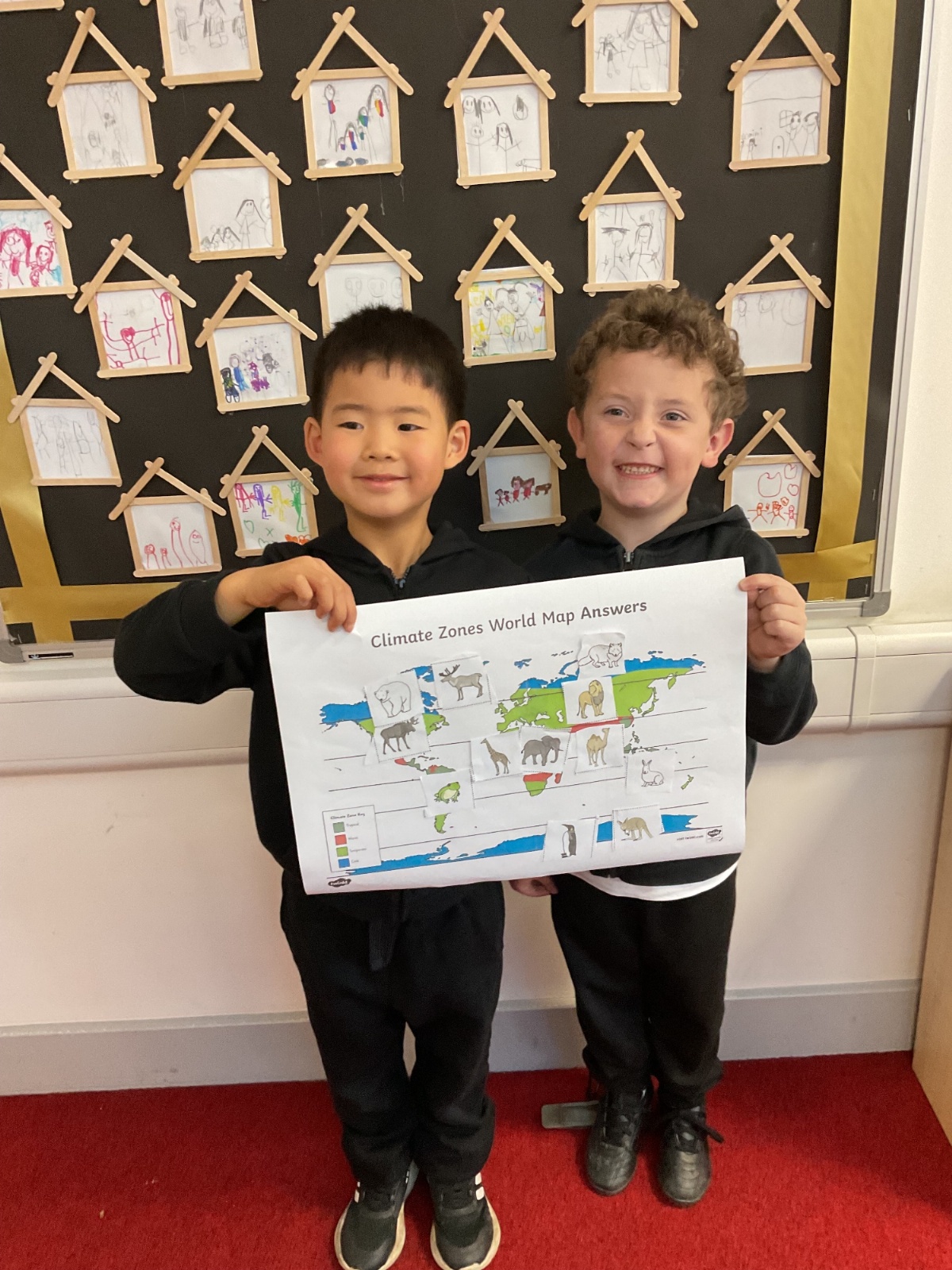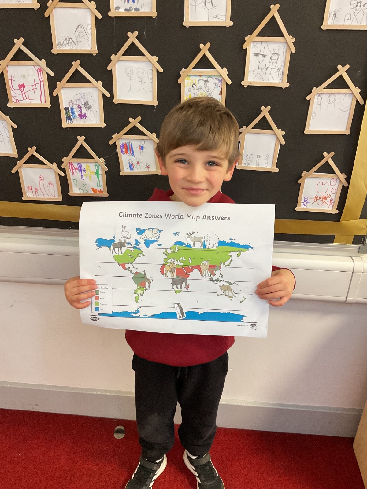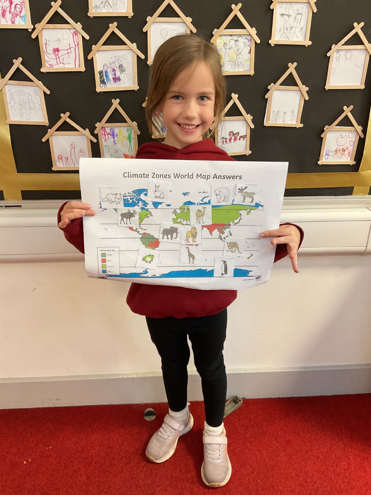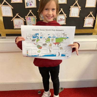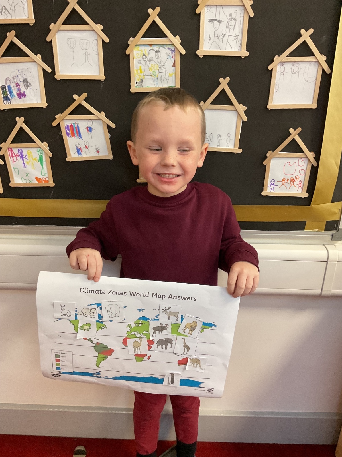 In geography, we have been learning all about the different climates we have on earth (hot, cold, warm, polar, temperate and tropical). We found out how the tilt of the earth affects our seasons and climate in the UK. We then matched animals to the climates that they live in. We found some easy to place, whilst others proved a little trickier.
