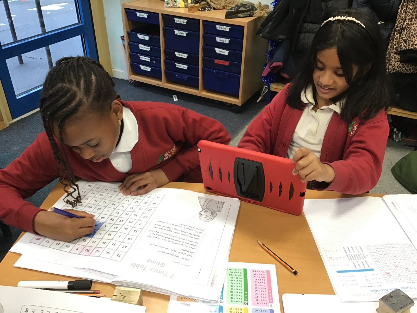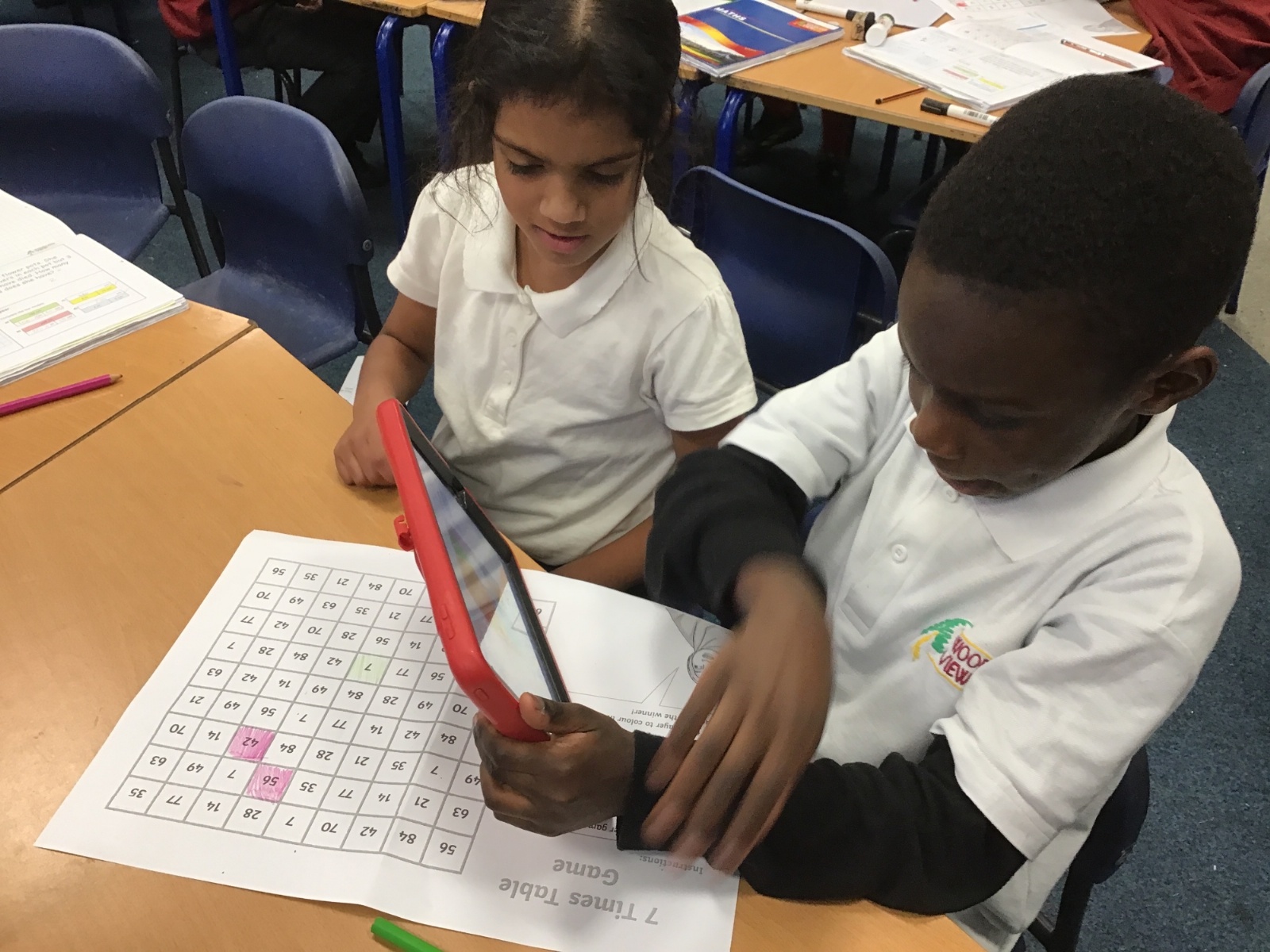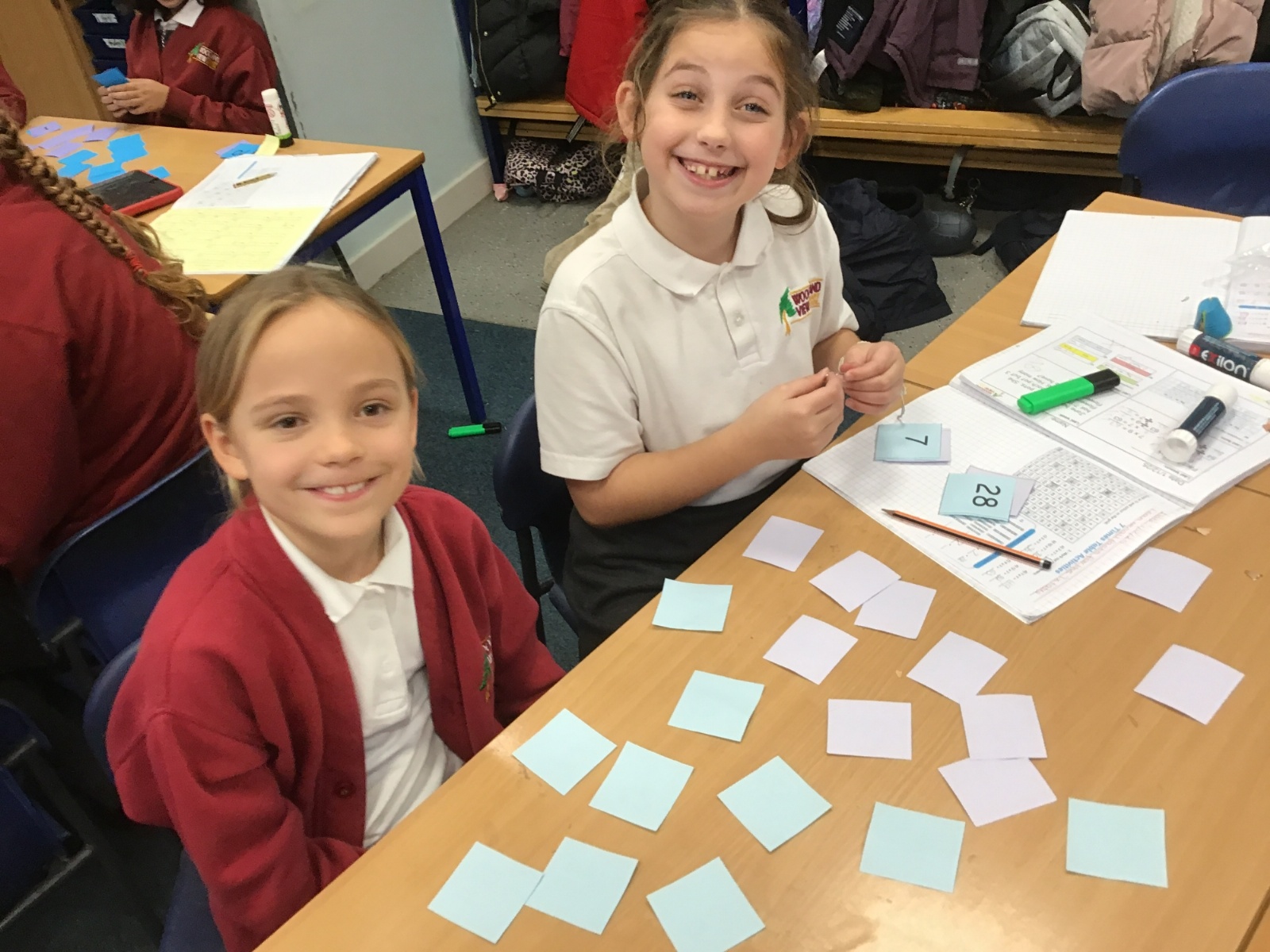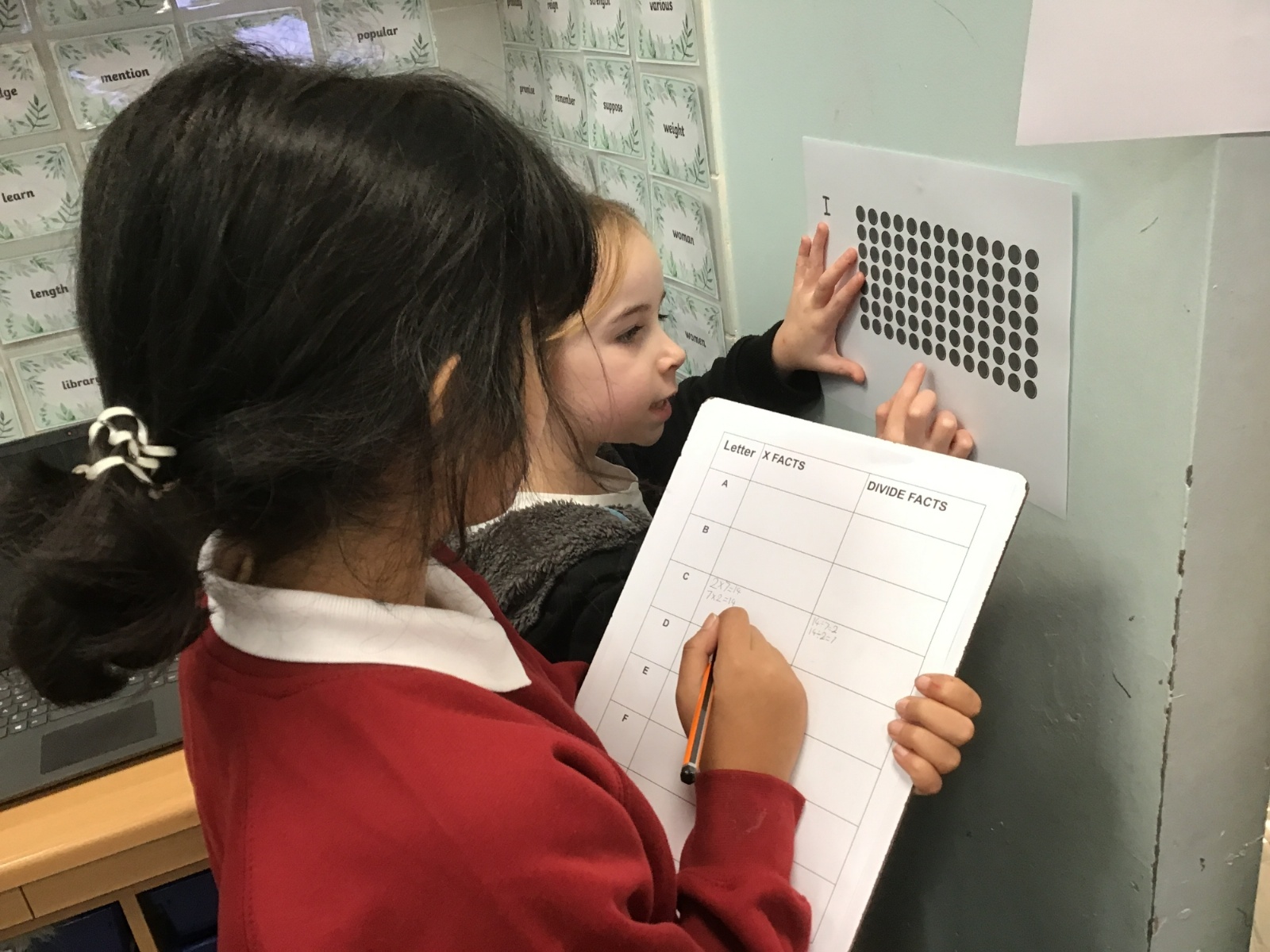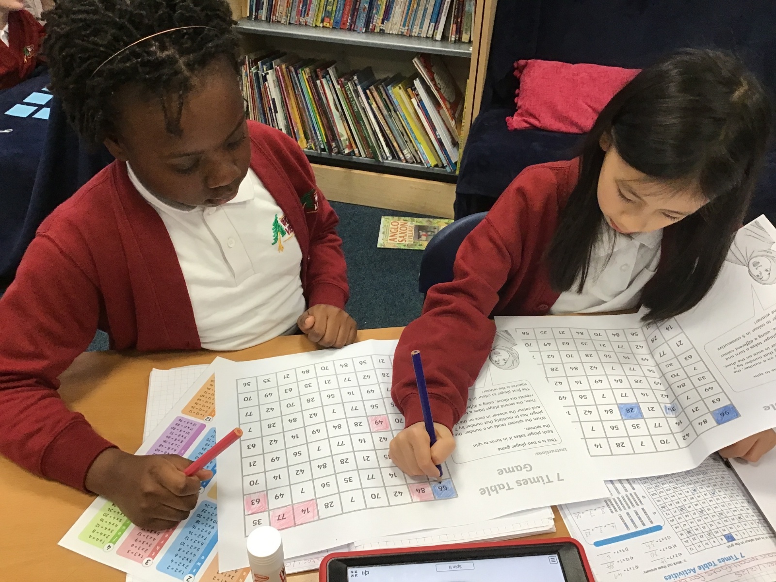 This week in Maths we have been looking at the 7 and 11 times tables. We started off by identifying the answers we already knew based on our previous learning on times tables. For instance, we knew the answer to 7 x 5 as it was the same as 5 x 7 as we know our five times table. We also looked at the arrays that these times tables created and used these to identify the division facts that we then knew because of the 'families' of numbers. i.e. 12, 3 and 4 are a family because 3 x 4 = 12 and 12 divided by 4 = 3. We also played some times table games to improve our quick recall of the 7 times table- a notoriously tricky times table!
