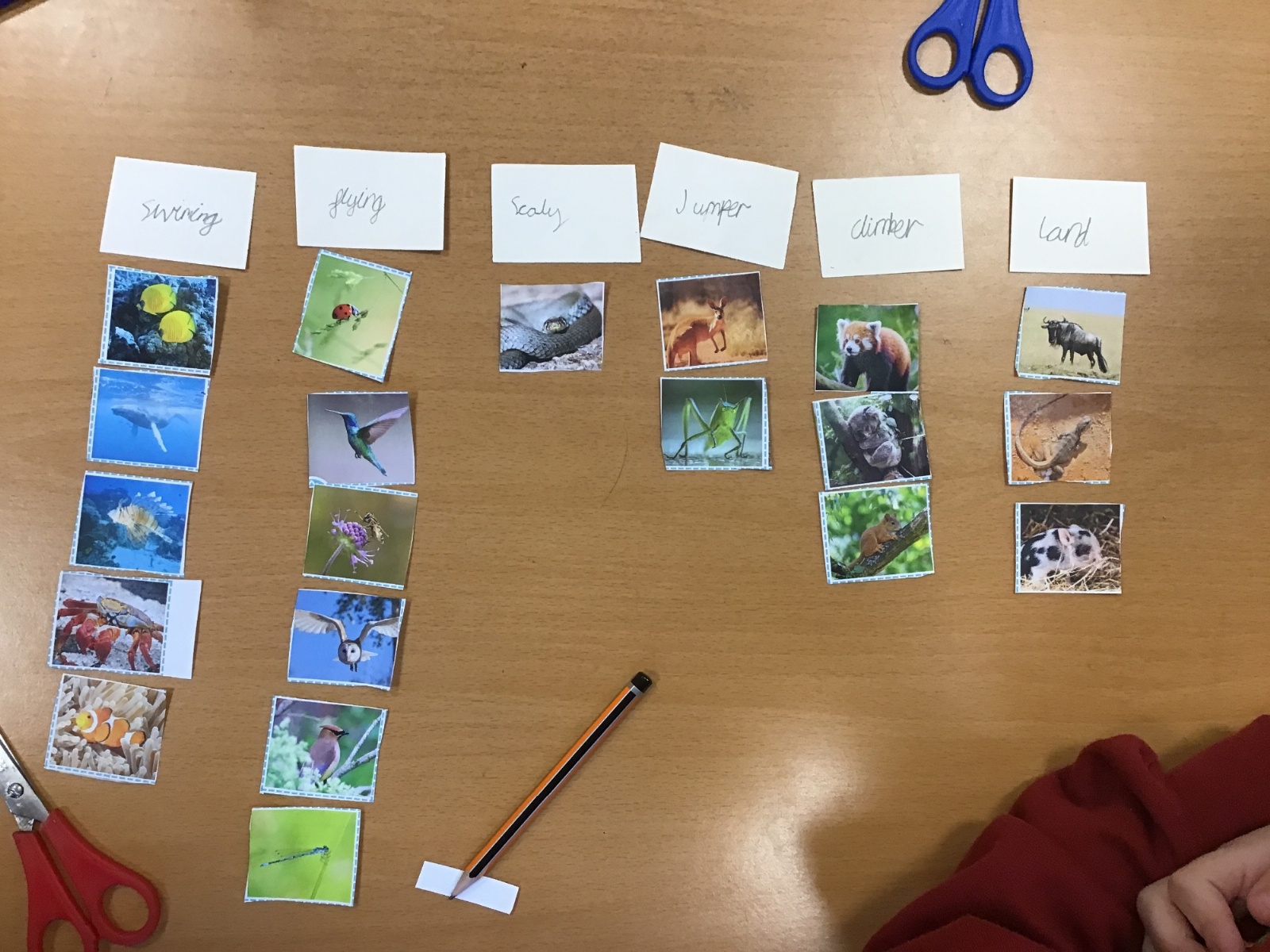 During our science lessons, we have been looking at how we can classify different animals. We worked in partners and were given a selection of animals which we had to group in as many different ways as we could. We then learnt how to create a classification key to identify each animal.