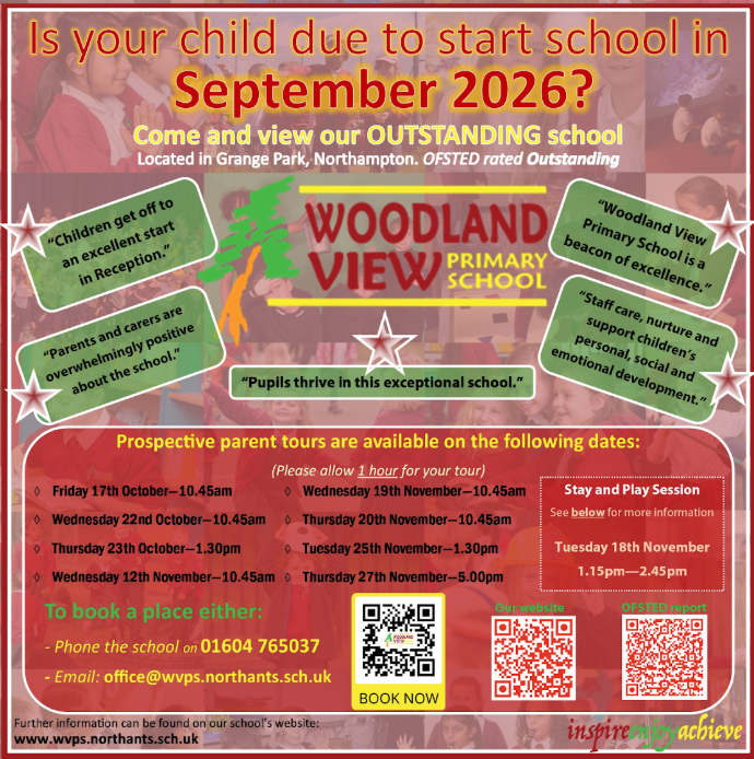 We are now offering tours for prospective parents who are looking for school places from September 2026. If you know of any families who may be considering schools for their child, please point them to our website https://www.wvps.northants.sch.uk/page/?title=Admissions&pid=17 where they can find further details and book a visit. These tours are a great way for families to see our school in action and get a real feel for the warm, welcoming environment we are so proud of.